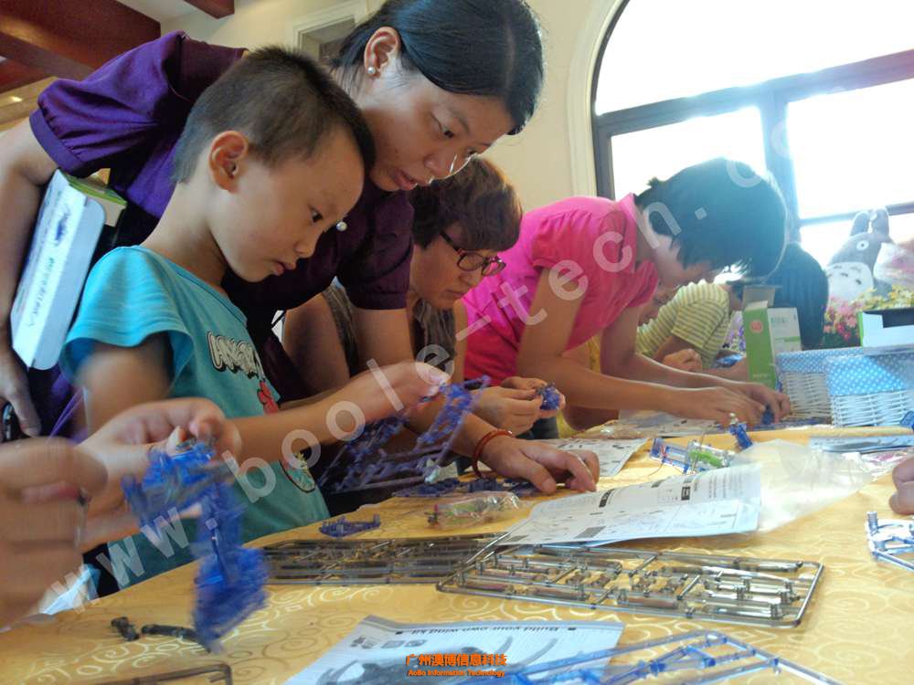 家長和孩子們一起親手制作機(jī)器人!