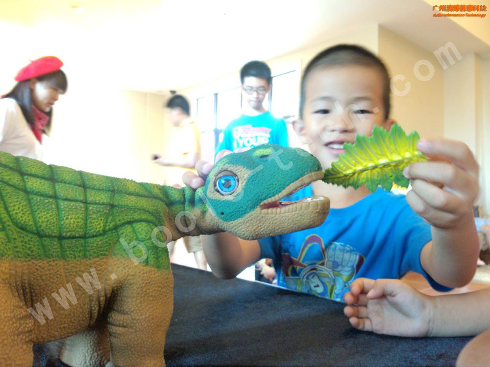 高仿真機(jī)器恐龍,全身多個傳感器。像個孩子一樣,只要多撫摸它,它就會搖搖尾巴,還試著學(xué)走路,餓了還會叫著向你要吃呢!